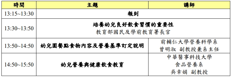 【開放報名】「幼兒園餐點食物內容及營養基準」全國說明會